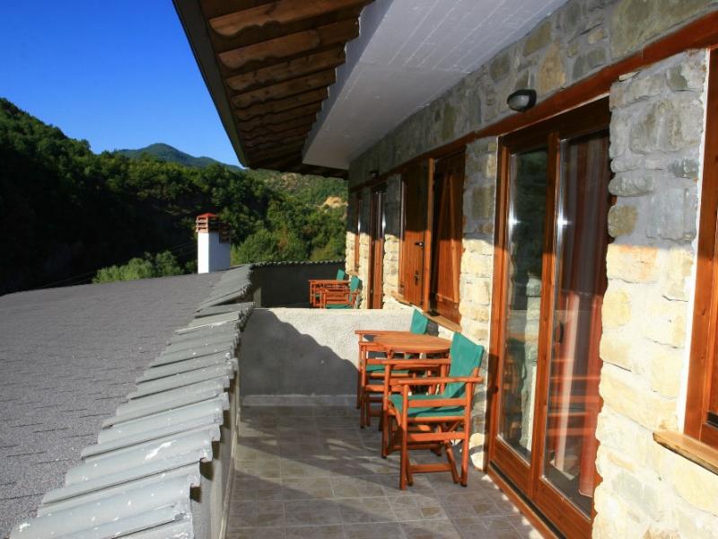 Στον εξωτερικό χώρο το κτίριο διαθέτει πάρκινγκ και στέγαστρο, ενώ το μπαλκόνι δίνει στους φιλοξενούμενους τη δυνατότητα να απολαμβάνουν τον καφέ τους στην δροσιά των καλοκαιρινών απογευμάτων με τις μυρωδιές του ολάνθιστου κήπου και την μοναδική θέα στον ποταμό Αλιάκμονα.