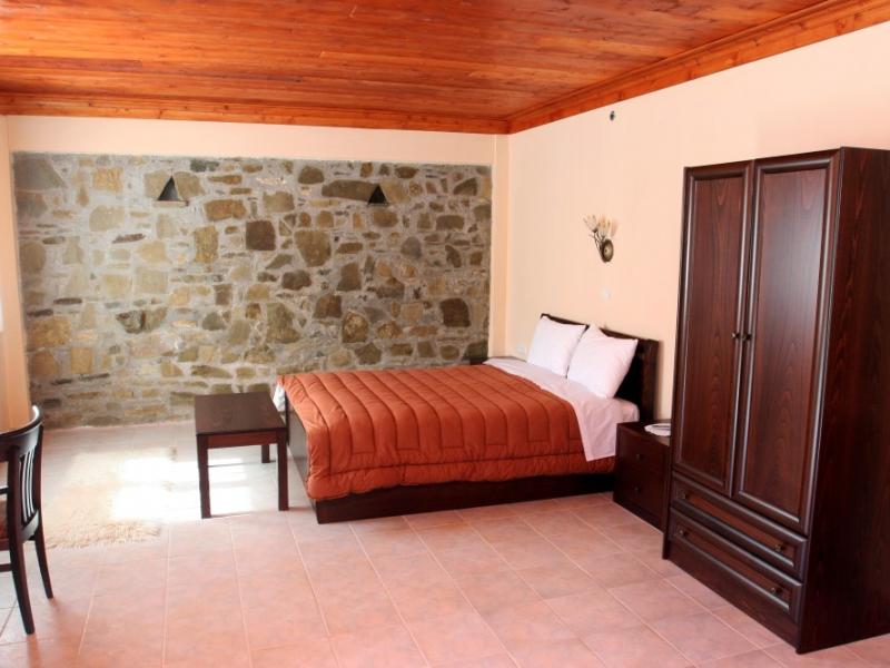 ξενωνας Νεστοριο ΚαστοριαΤο πρώτο κτίριο είναι νεόκτιστο παραδοσιακού τύπου, με τέσσερα όμορφα διακοσμημένα δίκλινα και τρίκλινα δωμάτια με έμφαση στην ευρυχωρία και την άνεση, ενώ η καθαριότητα αποτελεί το κυριότερο μέλημά μας. Τα δωμάτια όλα διαθέτουν μπαλκόνι, ενώ η θέα στον ποταμό Αλιάκμονα είναι μοναδική. Τα δωμάτια είναι πλήρως εξοπλισμένα με αυτόνομη θέρμανση, air-condition, εσωτερικό μπάνιο με ντουζ και καλωδιακή τηλεόραση.