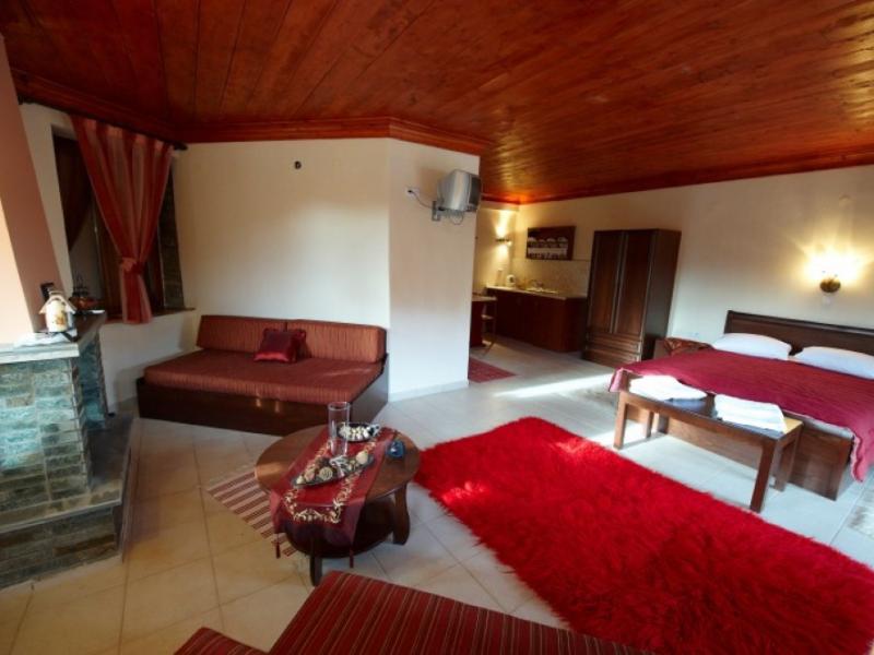Παράλληλα, οι πολυτελείς σουίτες «ΑΛΕΞΑΝΔΡΟΣ» είναι ένα τριώροφο νεόκτιστο κτίριο με μοναδική αρχιτεκτονική! Ο πετρόκτιστος ξενώνας περιλαμβάνει έξι αυτο-εξυπηρετούμενες πολυτελείς σουίτες 50 τ.μ. η κάθε μία. Ο συνδυασμός του παραδοσιακού και μοντέρνου στυλ, με ξύλο και πέτρα, προσδίδουν μια μοναδική ζεστασιά και πολυτέλεια. Το σαλόνι με τη τηλεόραση και το παραδοσιακό τζάκι, το υδρομασάζ, το ιδιωτικό και ευρύχωρο μπαλκόνι με θέα στον ποταμό Αλιάκμονα, συνιστούν μια εξαιρετική εμπειρία απόλαυσης, άνεσης και πολυτέλειας ακόμη και για τον πιο απαιτητικό επισκέπτη.