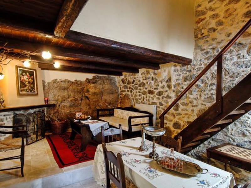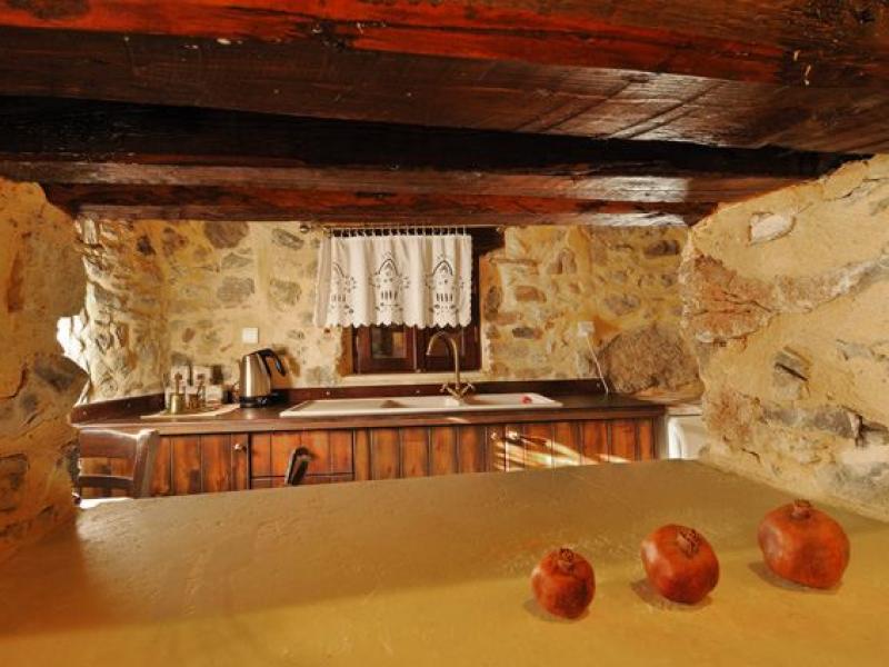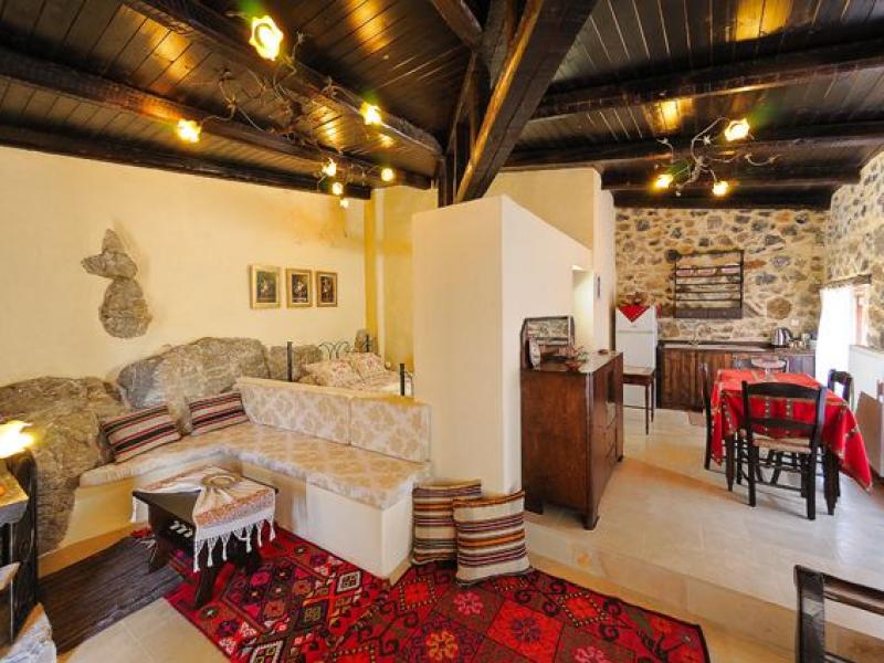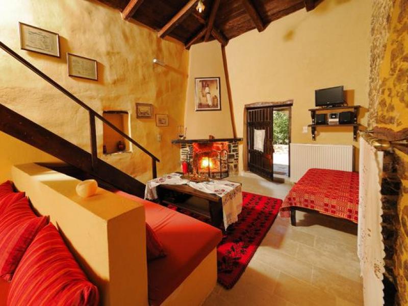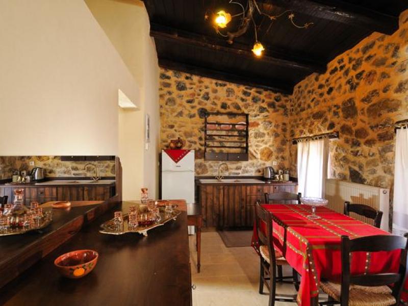 Στο κέντρο του συγκροτήματος ένα μεγάλο κτίριο συνδεδεμένο με μια σειρά θρύλων αποτελεί το σημείο συγκεντρώσεως και αναψυχής, όπου ο επισκέπτης θα βρει μια πλούσια παραδοσιακή κουζίνα, με ντόπια, φρέσκα υλικά που παράγει με τον ίδιο τρόπο, αιώνες τώρα, η μάνα γη. Η ιδιαίτερη θέση του συγκροτήματος σε υψόμετρο 800 μέτρων στις πλαγιές των Αστερουσίων, και με ανοικτό ορίζοντα στο Λιβυκό Πέλαγος, δημιουργεί ένα ιδιαίτερα ξεχωριστό κλίμα. Αξίζουν να μνημονευτούν τα θαυμάσια σύννεφα που γεννιούνται και σβήνουν, γύρω από το χωριό καθώς και η κρυστάλλινη διαύγεια του ορίζοντα που γαληνεύει την όραση και την ψυχή.