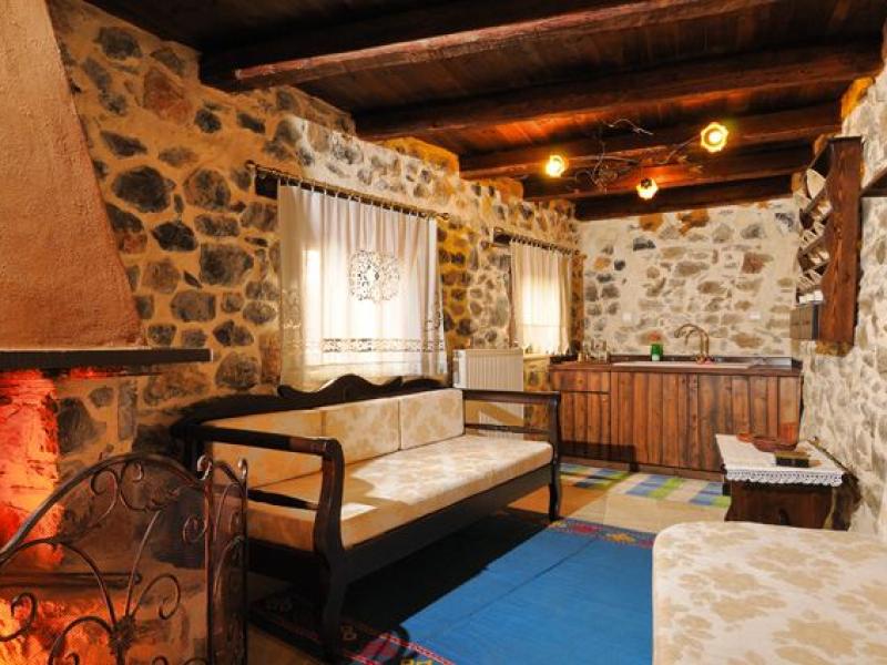 Τα φυσικά υλικά που έχουν χρησιμοποιηθεί για την κατασκευή των Ξενώνων, όπως η πέτρα σε εξωτερικούς και εσωτερικούς χώρους, το ξύλο, το μάρμαρο, καθώς και η φυσικοί βράχοι που βρίσκονται αυτούσιοι στο εσωτερικό των περισσότερων Ξενώνων και τα παραδοσιακά τζάκια είναι ορισμένα από τα στοιχεία που κάνουν το συγκρότημα αυτό ξεχωριστό.