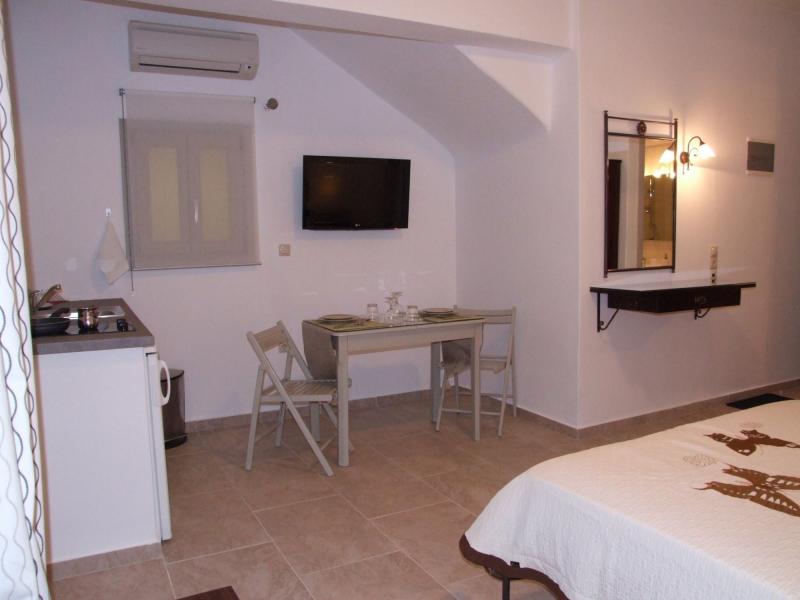Κλιματισμός, Τηλεόραση, Πλήρως εξοπλισμένη κουζίνα, Ψυγείο, Μπάνιο με ντους, Πιστολάκι μαλλιών, Δίκλινα Studios.