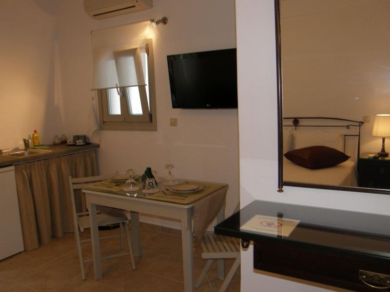 Υπάρχουν στη διάθεση σας 3 τρίκλινα Studios με δυνατότητα να φιλοξενήσουν άνετα και 4ο άτομο. Ιδανική λύση για οικογένειες.