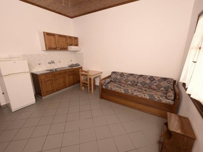 Κουζίνα-καθιστικό με καναπέ που γίνεται δύο μονά κρεβάτια.