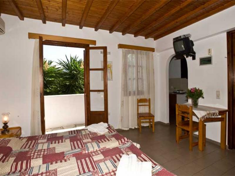 Ολα τα δωμάτια διαθέτουν πλήρως εξοπλισμένη κουζίνα για να φτιάξετε μονοθ σας το πρωινό σας, ή ακομα το γεύμα σας, ψυγείο, κλιματισμό, τηλεόραση κι μπαλκόνι με θέα στον κήπο μας. Επίσης προσφέρετια καθημερινή υπηρεσία καθαριότητας.