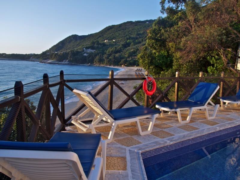 Η απόλυτη θέα από τα δωμάτια σας της καταγάλανης θάλασσας και της παραλίας θα σας ξεκουράσει  ξεχνώντας την πρόσβαση από το επικλινές έδαφος του ξενοδοχείου που είναι κτισμένο αμφιθεατρικά πάνω σε βράχο  με υψομετρική διαφορά από τον παραλιακό δρόμο σε ράμπα 30 μ περίπου ή 60 περίπου σκαλοπατιών έως την κεντρική είσοδο του συγκροτήματος.