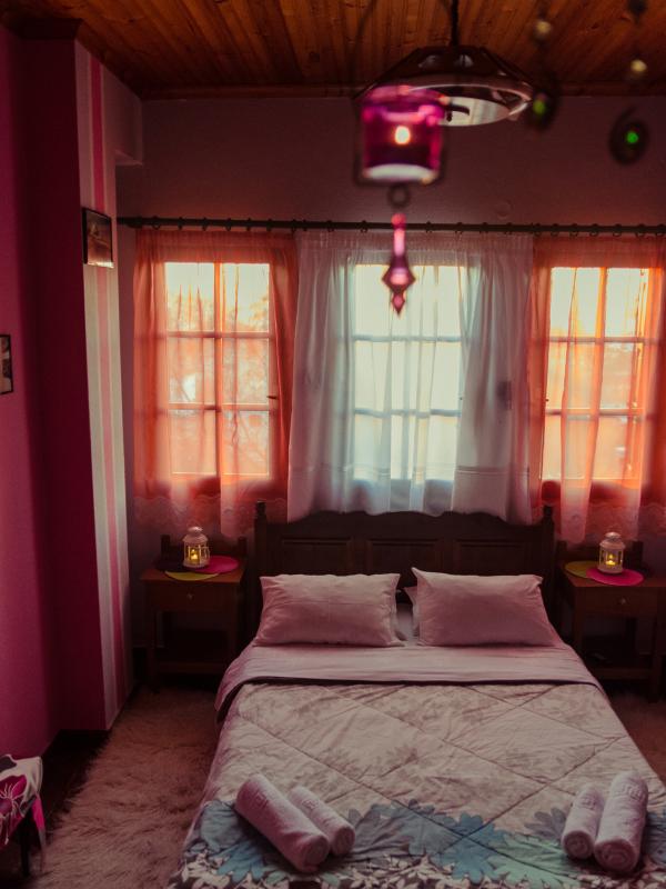 Στον ξενώνα Όλγα μπορείτε να χαλαρώσετε σε ένα πολύ καθαρό και ήσυχο περιβάλλον. Διαλέξτε μεταξύ μιας παραδοσιακής σουίτας με τζάκι ή ενός πιο μικρού, ζεστού δίκλινου δωματίου. Απολαύστε το ποτό, τον καφέ και το πρωινό σας στην ηλιόλουστη καταπράσινη αυλή μας το καλοκαίρι ή γύρω απ 'το μεγάλο, χτιστό τζάκι το χειμώνα. Στον ξενώνα μας επίσης θα βρείτε ελεύθερο πάρκινγκ.