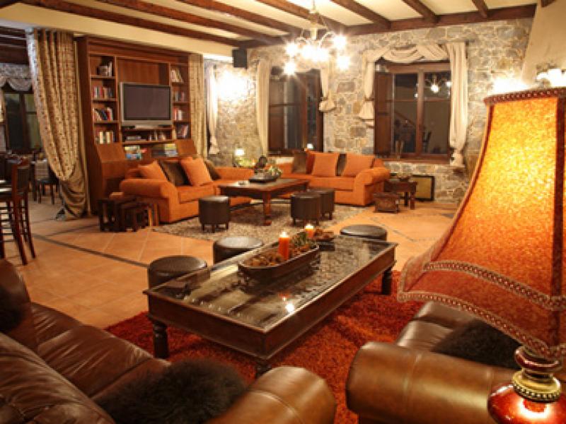 Wieczorem sala śniadaniowa i salon to przyjemne miejsce, w którym akougonas muzyki, aby cieszyć się drinka, lokalny trunek lub kieliszek wina, gra w gry planszowe lub na czacie.
