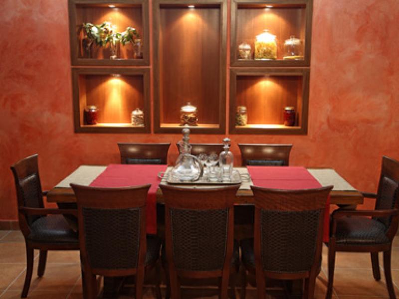 Czas prostych dobrych chwil relaksu wypełnia pokój dzienny, 150 mkw dyskretny luksus, który odnosi się do sali gościnnej domu. Żywe ciepłe kolory tworzą marzycielski nastrój, który napędza odwiedzającego na cieple i spokoju.