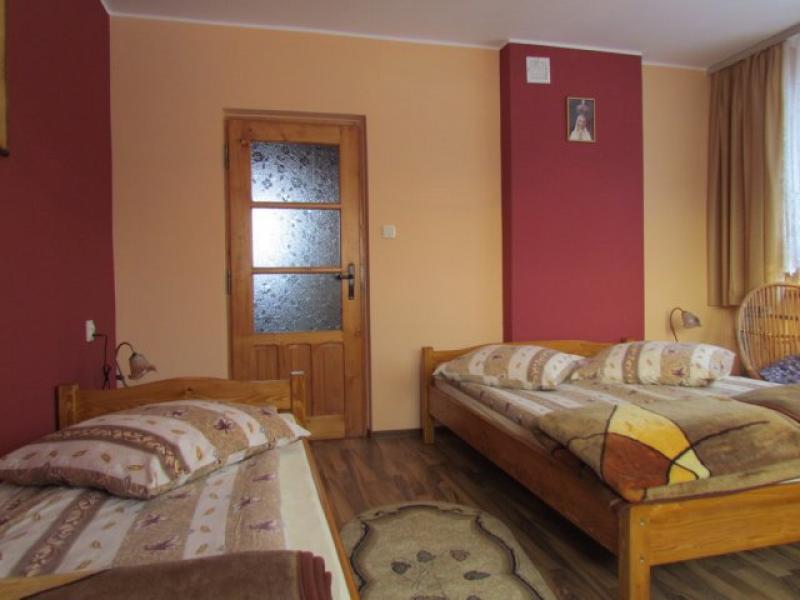 Oferujemy gościom miejsca noclegowe w pokojach od dwu do czteroosobowych z łazienkami. Pokoje noclegowe wyposażone są  w telewizory LCD, własną łazienkę, szafy na ubrania, stolik, oraz pufy do siedzenia.