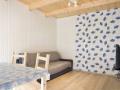 • Na parterze znajduje się salonik tv z rozkładaną dwuosobową sofą, łazienka z prysznicem oraz w pełni wyposażony aneks kuchenny.