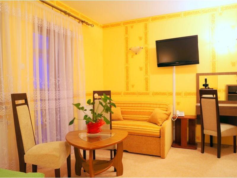 W cenie noclegu jest wliczone śniadanie, serwowane od 9:00 . Proponujemy obiadokolacje w cenie 35 zł od osoby serwowaną od 18:00.