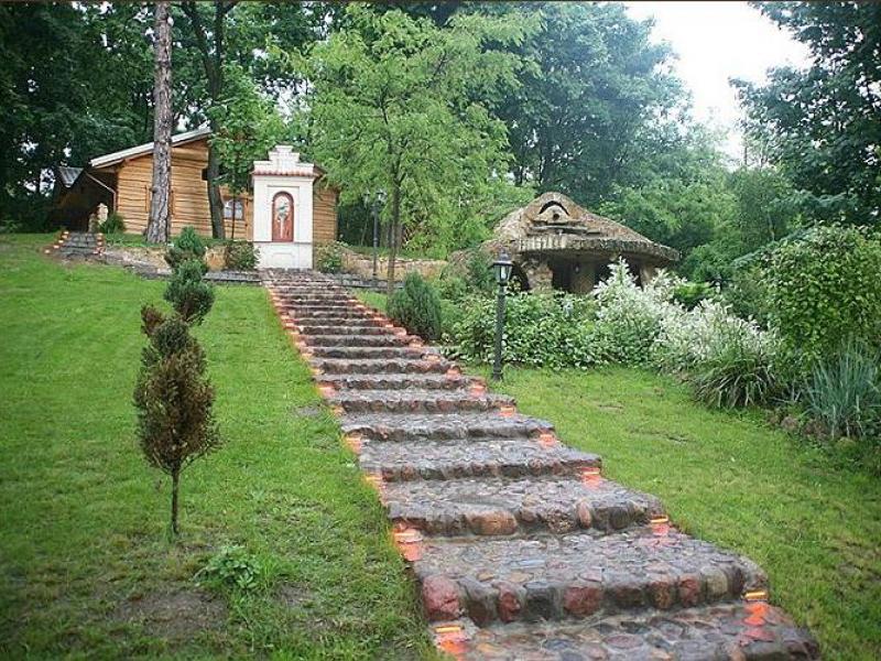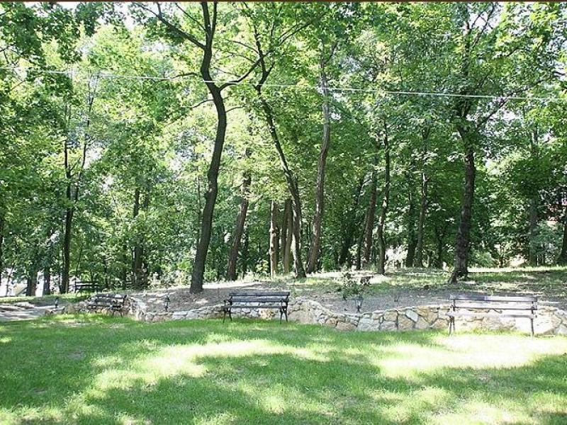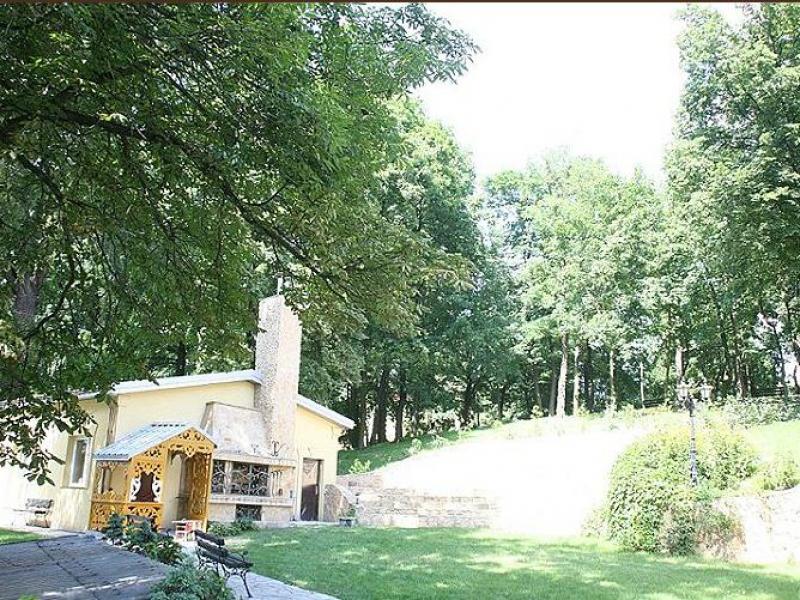 Chata myśliwska: Położona w prarku drewniana chata w stylu i wystroju myśliwskim. Miejsce imprez, pikników, spotkań
