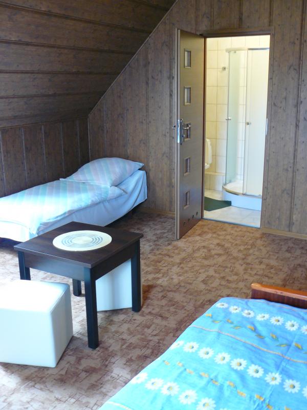 W naszej ofercie znajdują się przytulne pokoje 2,3,4 osobowe z łazienkami.
